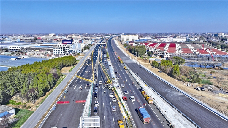 京沪高速广靖段西半幅双向开通