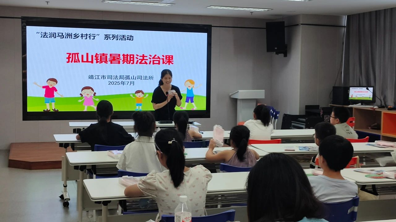 为进一步加强未成年人法治宣传教育,引导未成年人学法、守法、用法,自觉抵制不良行为,学会运用法律手段保护自己的合法权益,2025年7月22日下午,靖江市司法局孤山司法所工作人员在孤山镇暑托班开展了“法润马洲乡村行”系列活动之暑期法治课。本次讲座主要对未成年人保护法进行了解读,同期还有派出所民警开展预防欺诈、反邪教等知识讲座,讲座结束后工作人员向全体学生赠送了民法典、反邪教、反诈骗宣传资料近百份。