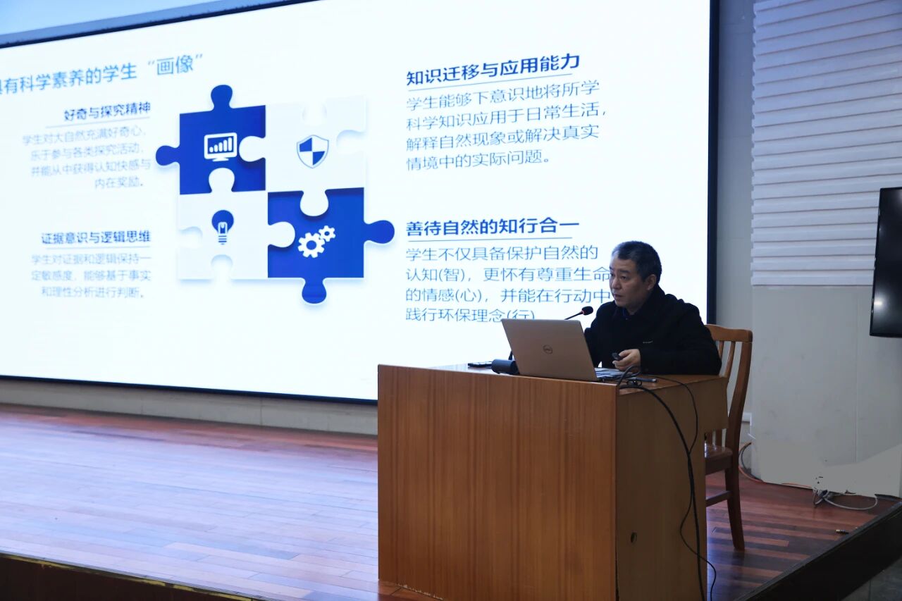 靖江市滨江学校钱亦城以《素养导向下小学科学新教材解读与教学转化》为题作专题讲座。钱亦城深入解读苏教版教材的编排逻辑,细致梳理一至三年级新教材的单元结构,并以多个教学案例呈现小学科学课堂教学的设计与实施方法,从理念落地、教材活用、课堂实施三个维度,提供给老师们可借鉴、可操作的教学策略。