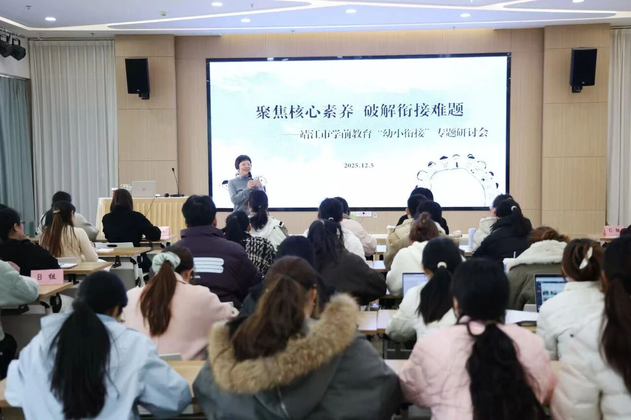 为深入贯彻教育部《关于大力推进幼儿园与小学科学衔接的指导意见》,聚焦核心素养、破解衔接难题,助力幼儿平稳跨越成长过渡期,近日,靖江市教师发展中心结合我市幼小衔接调查结果,组织开展学前教育“幼小衔接”专题研讨会。各幼儿园分管业务副园长、教育教学负责人齐聚一堂,共探区域实践路径。