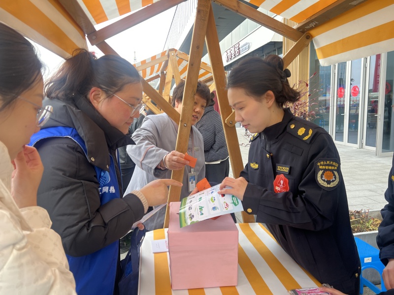3月5日,靖江市文化中心市民广场人头攒动,市城市管理局参加“‘靖’彩志愿 ‘江’爱传递 服务改革建新功”志愿服务集中活动。志愿者们通过发放文明手册、垃圾分类指南等资料,向参与活动的市民朋友们普及城市管理相关的法律法规。现场特别设置垃圾分类有奖问答小游戏,在抽奖箱中随机抽取问题,回答正确即可赢取餐巾纸盒、垃圾袋等奖品,吸引100余名群众踊跃参与。
