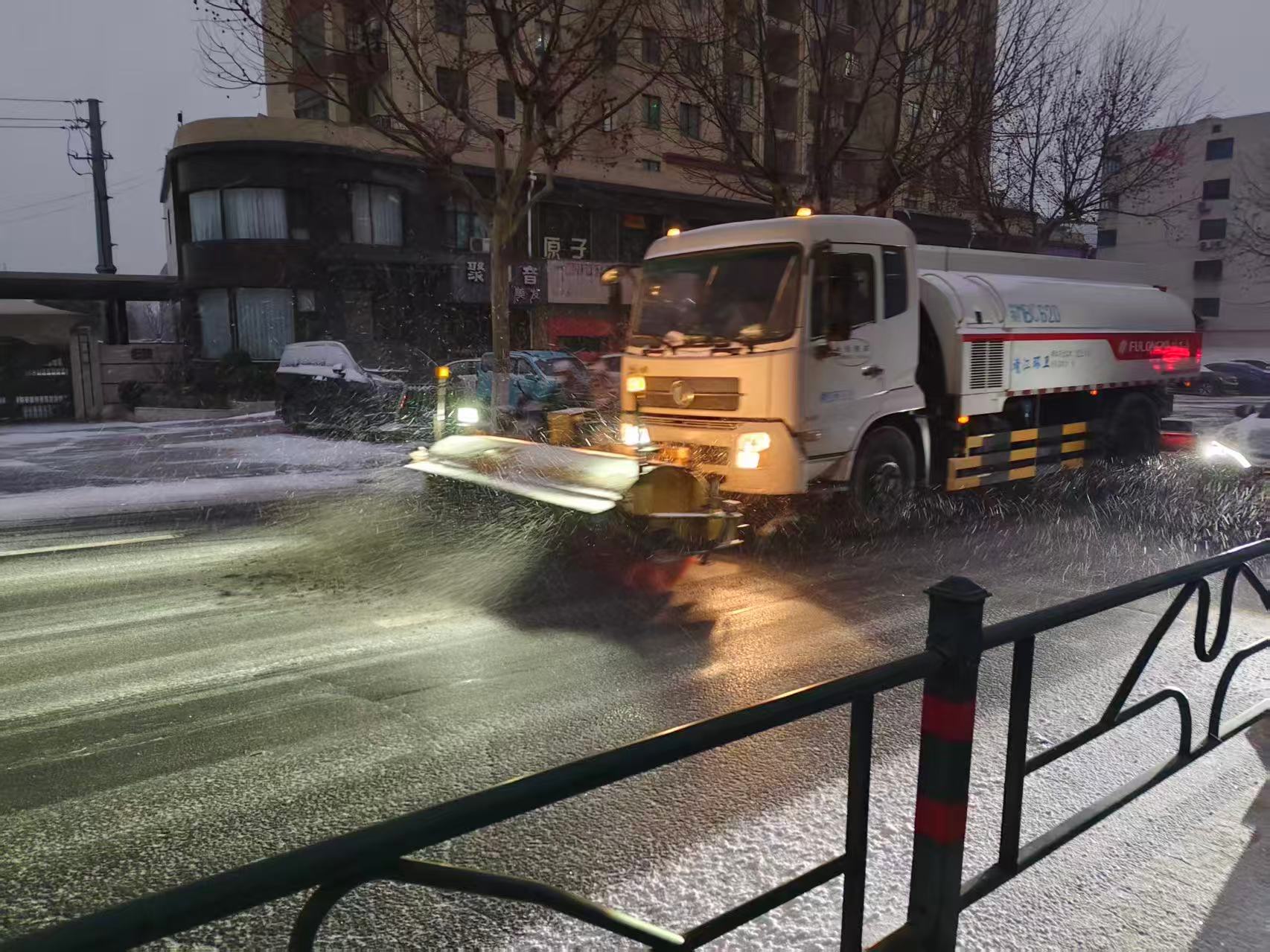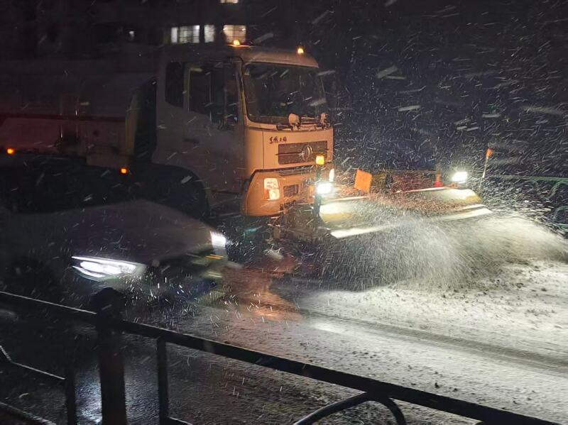 1月20日凌晨起,市环卫处组织620名作业人员,对辖区内城市道路、桥梁、坡道、人行道及非机动车道全面开展撒盐作业,本次除雪作业累计撒布融雪盐10吨。针对积雪密集区域,同步调配2辆扫雪车、2辆撒布机对重点路段实施机械化清扫与融雪剂撒布作业,全力防范路面结冰,保障道路通行安全。