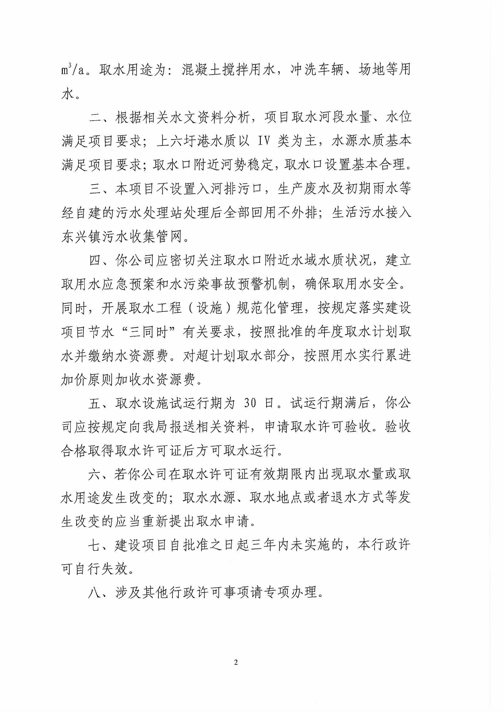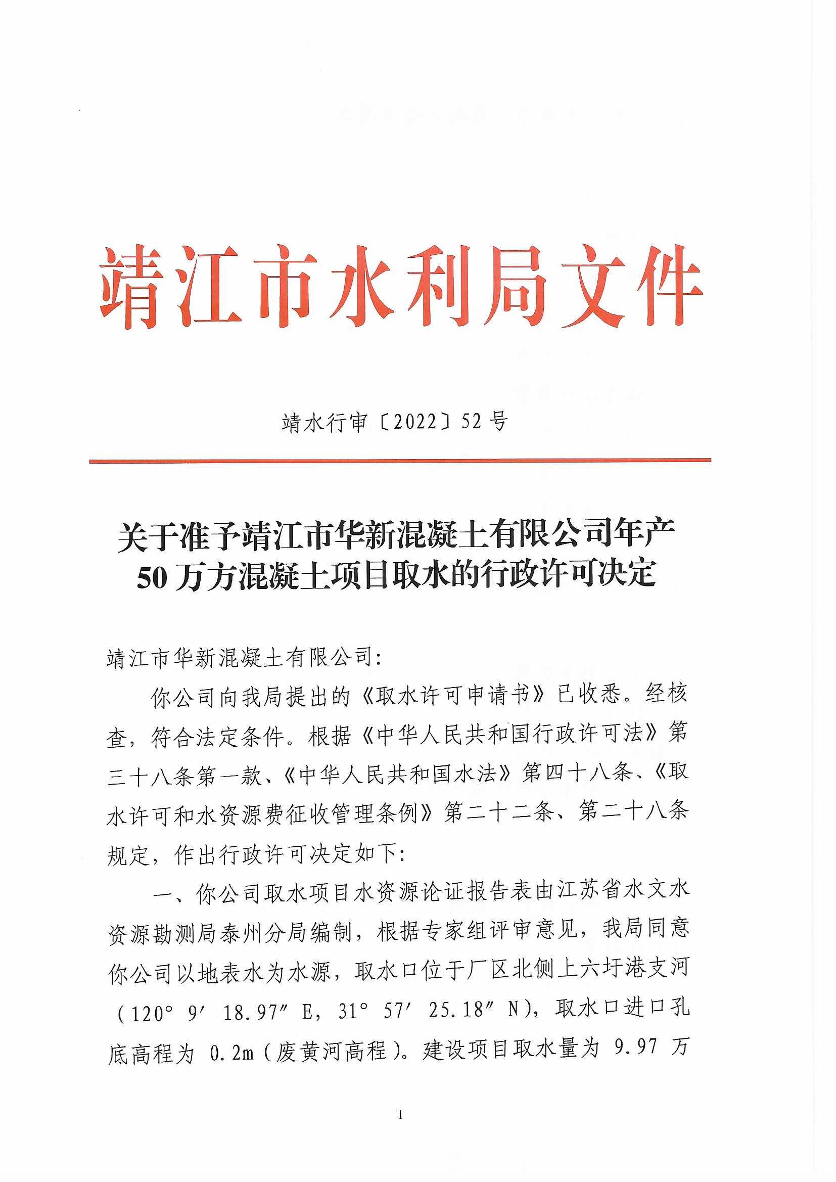 50万方混凝土项目取水的行政许可决定