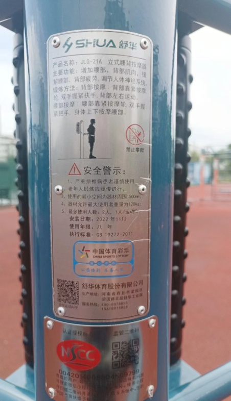 2.捐赠或购置的体育健身器材:安装“体育彩票公益金资助-中国体育彩票”标志,在场地设施和健身器材现场显著位置设置“中国体育彩票资助”标牌。