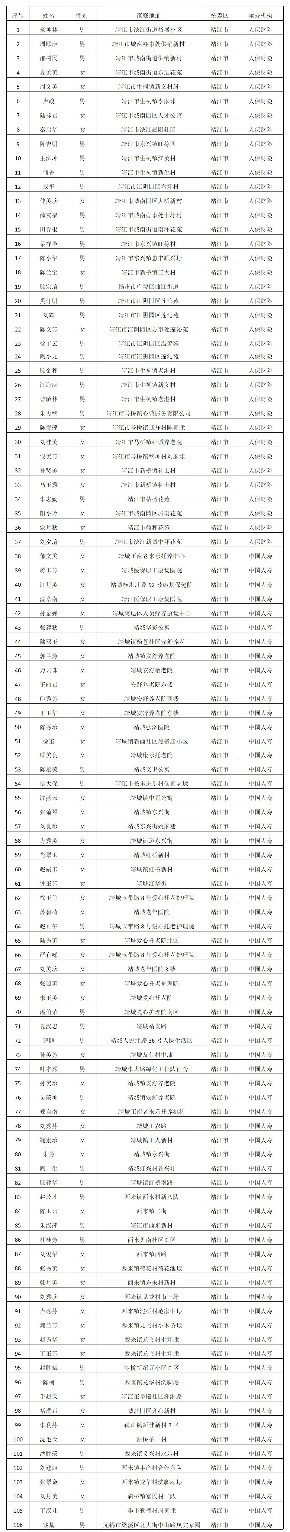 附件:《靖江市长期护理保险重度失能人员公示名单》