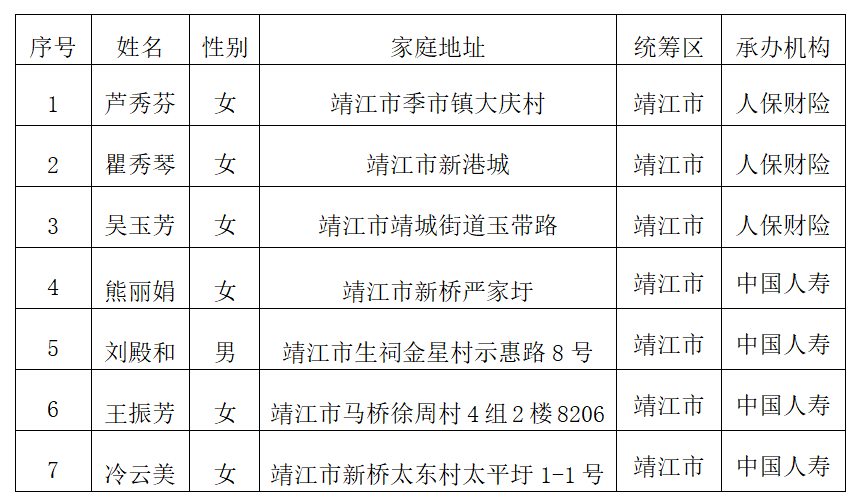 承办机构:中国人寿保险股份有限公司靖江支公司