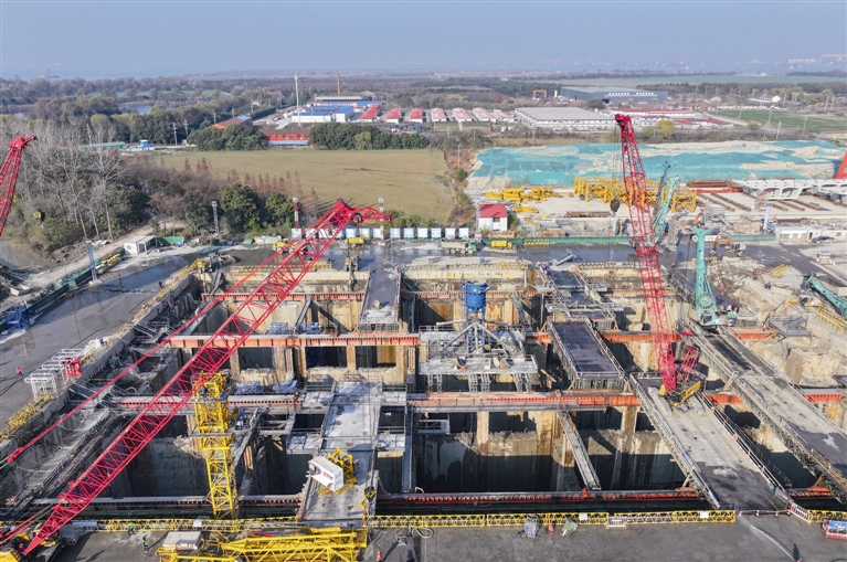 12月24日上午,张靖皋长江大桥南航道桥北锚碇大隔舱开挖施工已全部完工,这标志着“世界第一锚”主体施工正式拉开帷幕,北锚碇从向下扎根的阶段转入向上生长的阶段,自此开始“拔节长高”。朱其摄